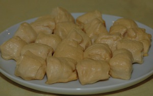 4.- Realizar las formas de marshmellows con la ayuda de una manga pastelera y poner encima de un papel de horno. Hornear durante 1 hora y media.